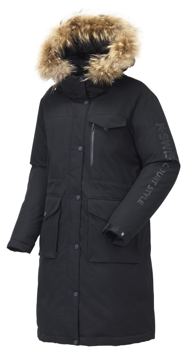 조직감이 있는 폴리 소재의 유틸리티 다운 자켓
