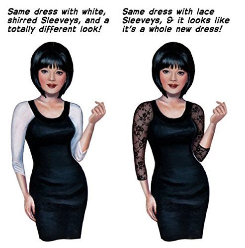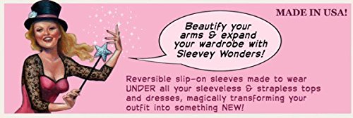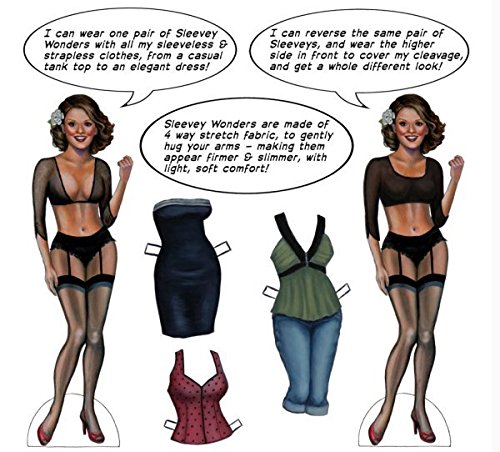Binding : Apparel Product Description Reversible slip-on sleeves made to wear UNDER all your sleeveless and strapless tops and dresses,magically transforming your outfit into something New! This is a fabulous item every woman will want to own. It solves the problem of bare arms. Clean lines define this classic sleeve style in a stretch jersey that gently hugs your arms, making them appear more toned. Elegant in its simplicity, this pair of slip-on sleeves looks equally good worn under a casual tank top, conservative office attire, or under a sleeveless or strapless dress. The no shoulder seam construction gives the illusion of being part of your top or dress, and has the option of being worn with the low-cut side in front, or reversed with the higher side in front to provide cleavage cover if so desired. This classic style adds a touch of sophistication while transforming your outfit and your arms! 0