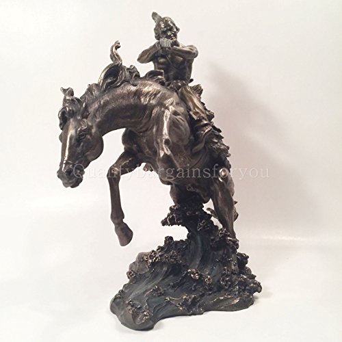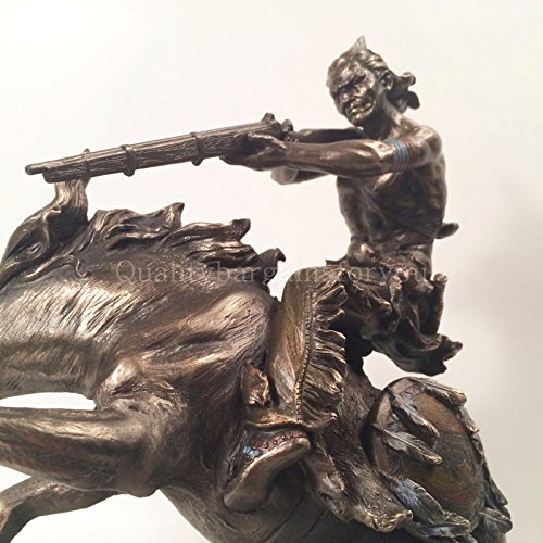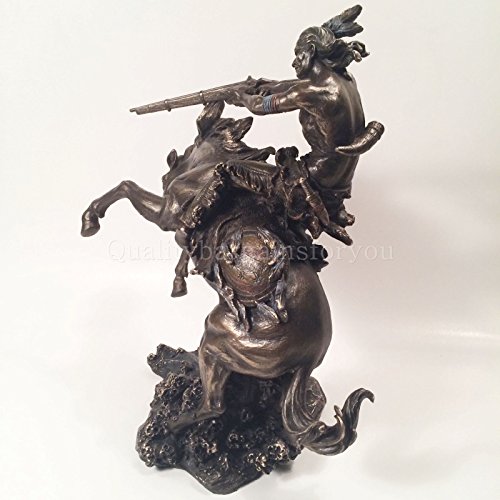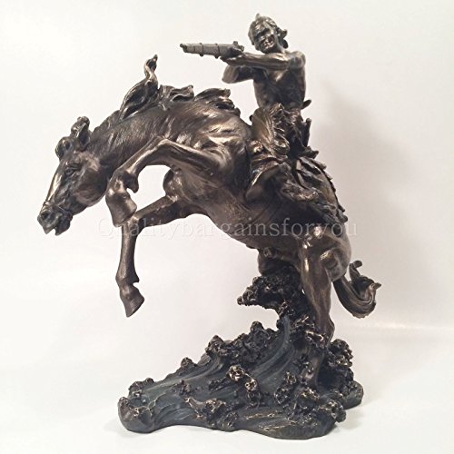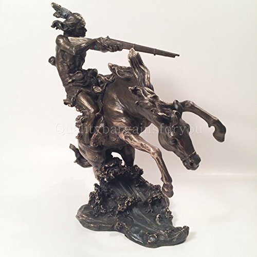 Indian With Rifle On Horse Taking Aim Statue Sculpture Figure