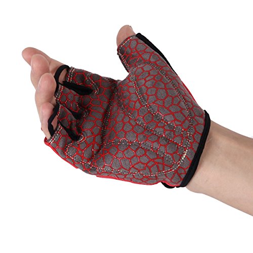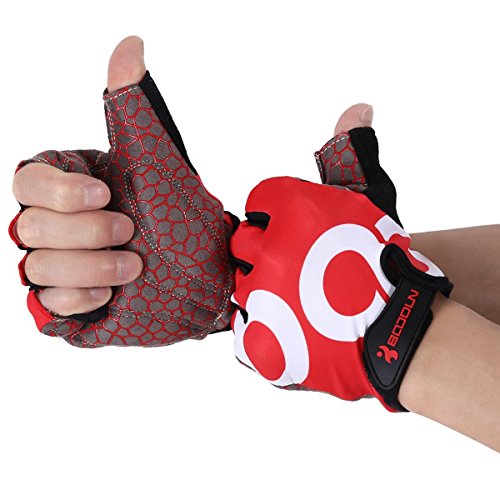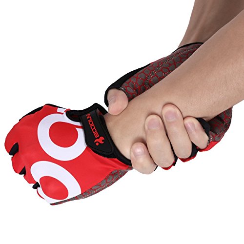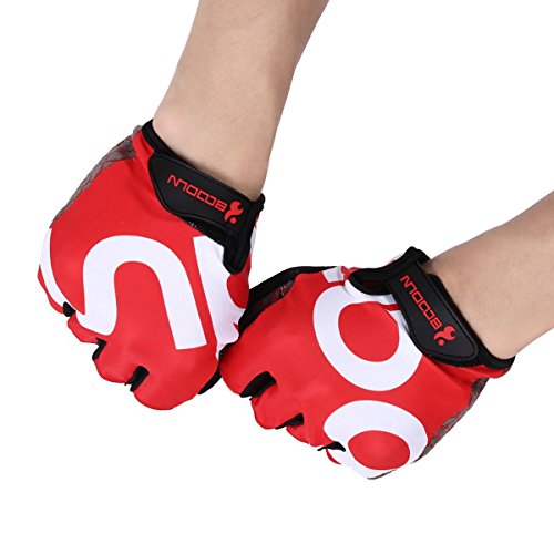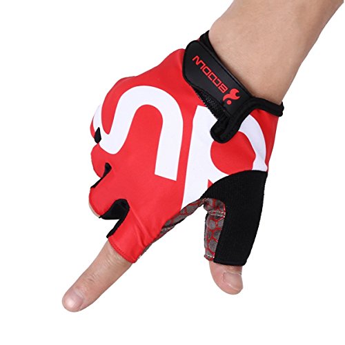 BOODUN Shock-Absorbing Gel Pad Breathable Half Finger Mountain Bicycle Bike Road Racing Gloves, Red with White Logo, Large