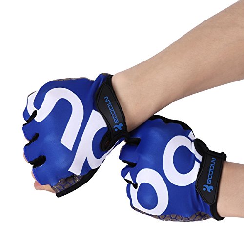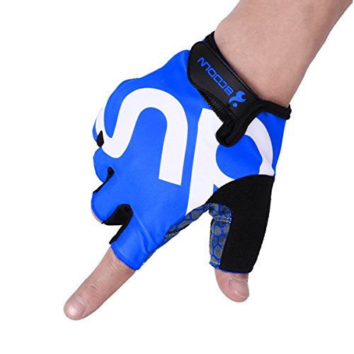 BOODUN Shock-Absorbing Gel Pad Breathable Half Finger Mountain Bicycle Bike Road Racing Gloves, Blue with White Logo, Large