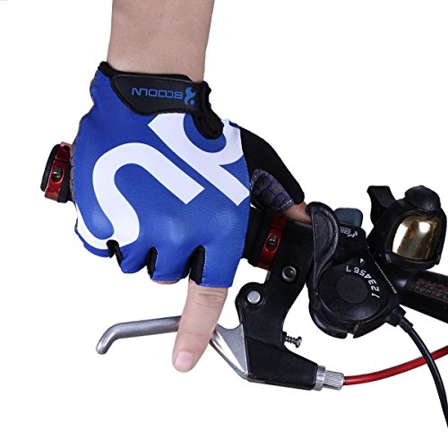 BOODUN Shock-Absorbing Gel Pad Breathable Half Finger Mountain Bicycle Bike Road Racing Gloves, Blue with White Logo, X-Large