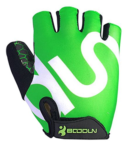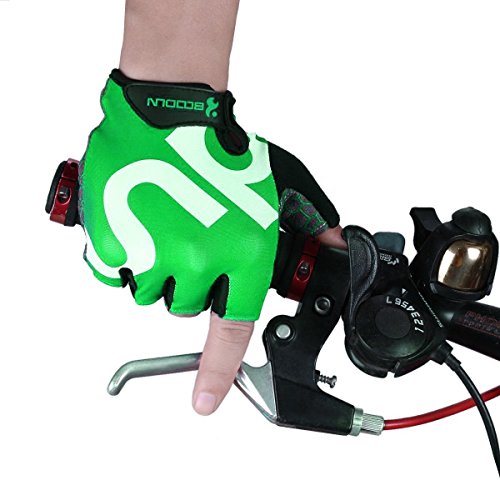 BOODUN BOODUN Men Women Cycling Gloves with Shock-absorbing Gel Pad Breathable Half Finger Mountain Bicycle Bike Road Racing Gloves (Green with White Logo, XX-Large)