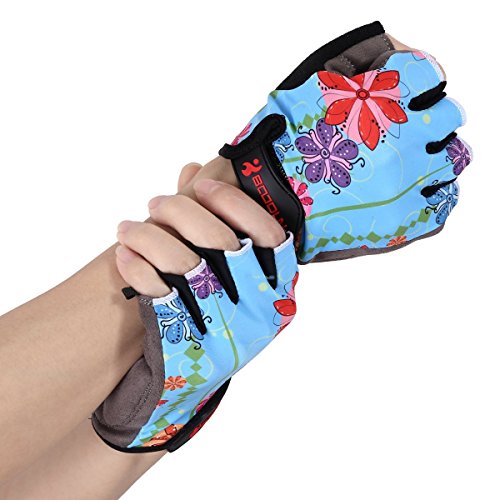BOODUN Women's Shock-Absorbing Gel Pad Breathable Half Finger Mountain Bicycle Bike Road Racing Gloves, X-Large