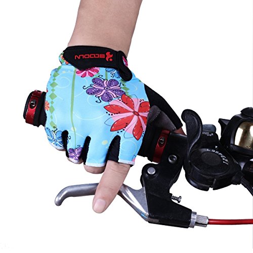 BOODUN Women's Shock-Absorbing Gel Pad Breathable Half Finger Mountain Bicycle Bike Road Racing Gloves, Large