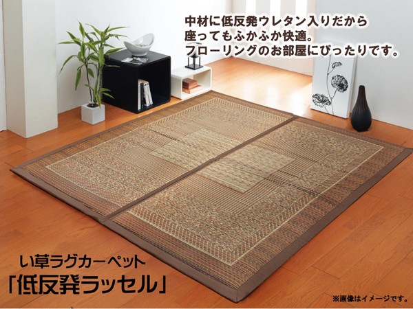 中材に低反発ウレタン15mmを使用したイ草カーペットです。低反発素材はエネルギーの吸収性に優れており、長時間使用した際の負担を分散します。裏には不織布を貼っていますので、フローリングのお部屋でのご使用に最適です。い草には空気の自然浄化作用、湿度の調節作用などがあります。また汚れにくく、使用するうちに黄金色に変化し、味が出ます。ホットカーペットカバーとしても使用できます。い草に青森ヒバ加工を施しています。(抗菌、防臭効果)