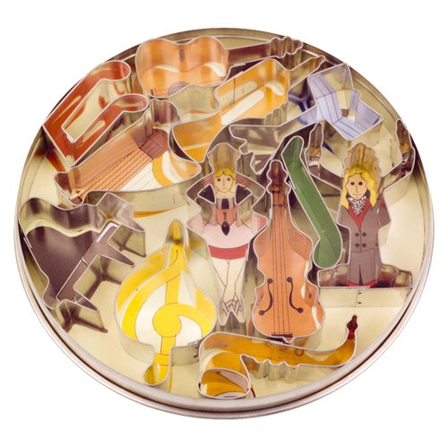 -. Feature : Ausstechformen / Form: Musik 12-teiig, 5-7,5 cm / Material: Weißblech / In der Dose