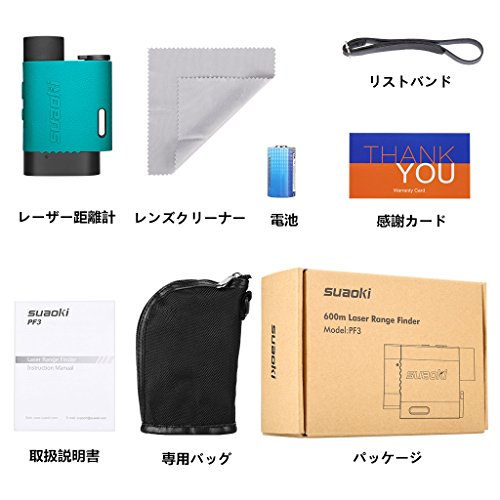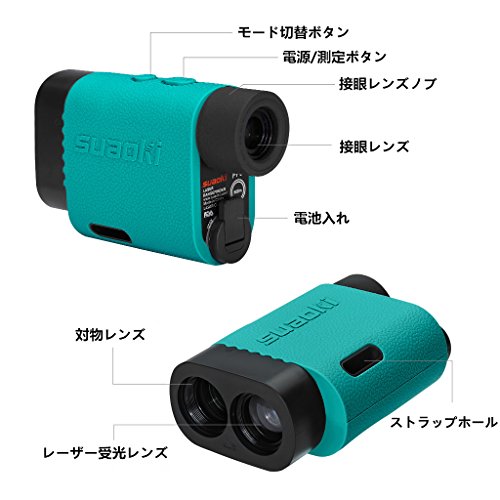ゴルフの弾道補正、フラッグロック、距離·高さ·角度の測定、2ポイントの高低差測定、速度測定など、多機能を持つsuaokiハンディレーザー距離計!