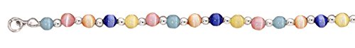 -. Title : Sterling Silver 9" Beaded Cateye Ankle Bracelet