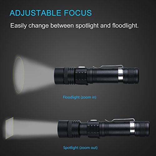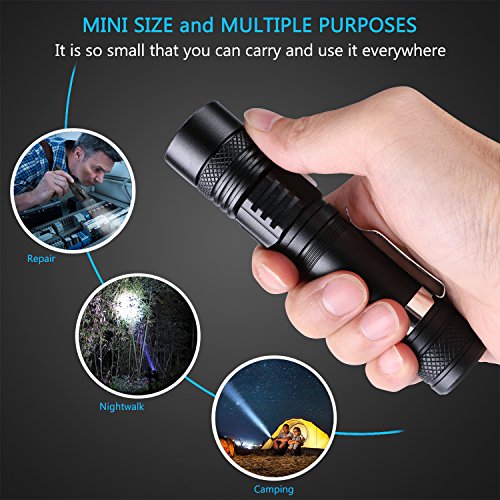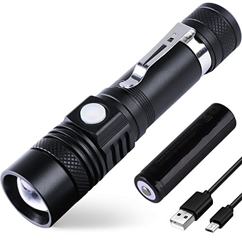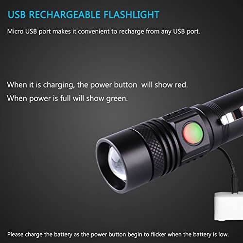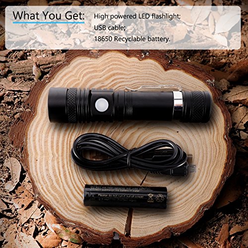 - Rechargeable: Micro USB port can be easily charged through computer, wall adapter, power bank and so on; No need to take off battery and charge flashlight directly using USB cable; A 18650 battery is included, which is environmental and low spend.
