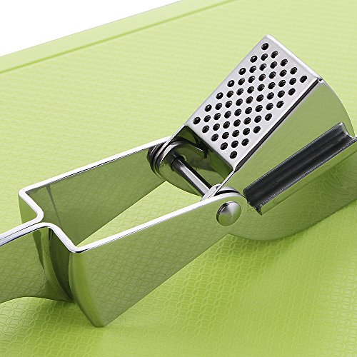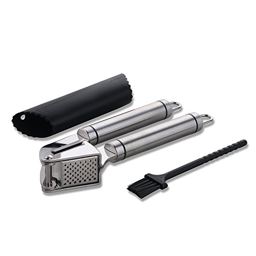 - Our garlic press is made of high quality stainless steel, which will not rust, resist impact and bend. It can hold the largest garlic cloves. Our peelers are made of solid, food-grade silicone and are durable.
