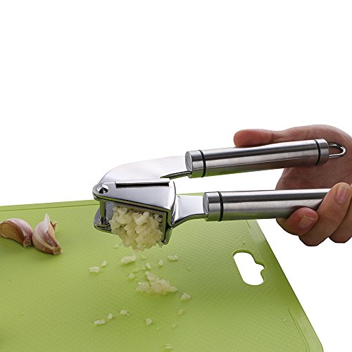 - Garlic is a common ingredient in many dishes. Our garlic press will definitely make it easier to cook, save time and effort, peel the garlic in a few seconds, chop them up, and don't leave your hands smelling.