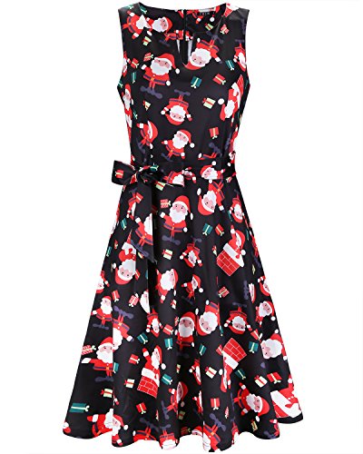 ININ Women's Sleeveless Casual Christmas Party Cocktail dress with pocket(Floral01,S)