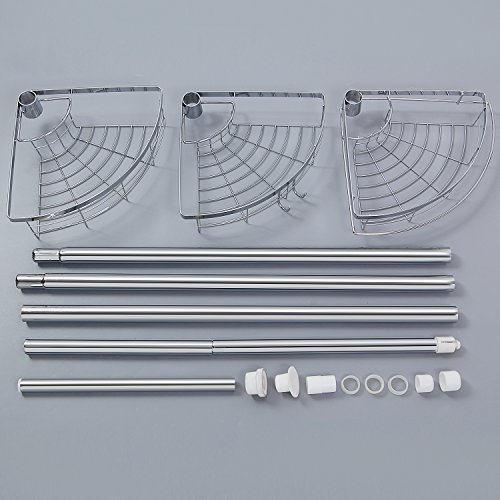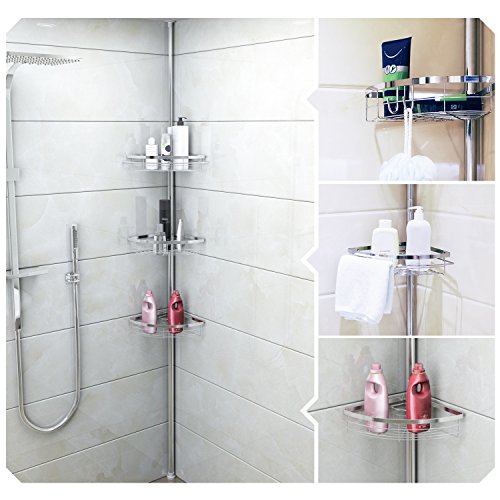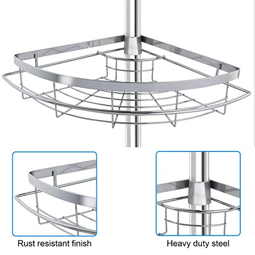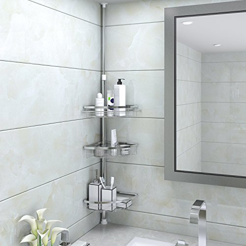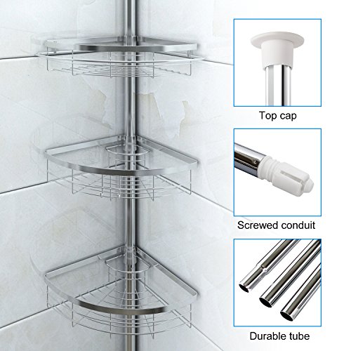 Description:? The Lifewit Tension Shower Pole Caddy delivers an elegant, minimalist, and space-efficient storing organizing solution to your shower space. Spring compression technology and heavy duty steel construction allows the caddy to be safely secured in shower corners with low to high ceilings. With Lifewit Tension Corner Pole Caddy, positions of baskets can also be adjusted for your convenience. At Lifewit, we strive to simplify the complicated things in life. Specifications:? Ceiling height requirement: 4.75 to 8.2feet Each Basket Weight Capacity: 6.6lbs/3kg Material:Chrome Steel Hook Basket Size:9.1 x 9.1 x 2.4in Wire Basket Size:9.8 x 9.8 x 2.4in? Package Included:? 1 x Tension Corner Pole Caddy? 1 x Instructions Note:? 1. The height of caddy pole can be adjusted from 7.46 feet to 8.2 feet. Measure your washroom height before assembly. In order to obtain tension required for stabilization, the caddy pole must be 3-5cm longer than the distance of ceiling to floor. 2. The height of the caddy pole can be changed by the adding or removing of the additional connecting tubes. You can also adjust the caddy height by loosening or tightening the connection between the second connecting tube and third connecting tube. 0 |