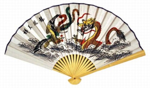 "Classic 20"" Oriental Feng Shui Wall Fan-Dragon & Pheonix"