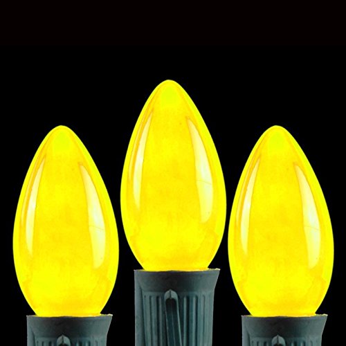 Each C9 bulb is 7 watts and 120V which gives just the right amount of light when lighting your house roof line for Christmas, your Christmas Tree, or a party string light for your restaurant or patio. This bulb is often referred to as a classic retro fit Christmas light bulb.