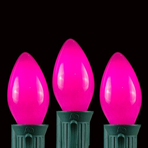 Novelty Lights 25 pack C9 ceramic oraque incandescent replacement bulbs works great for any indoor or outdoor lighting application that requires this retro fit tradition C9 bulb. This bulb works great for house rooflines during the holiday season or strung in a canopy patio application.
