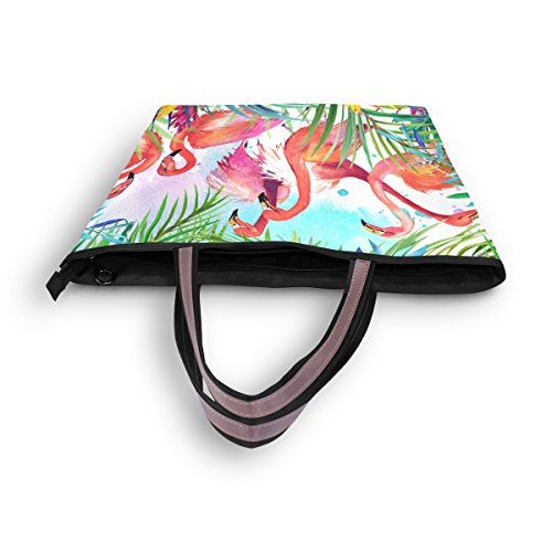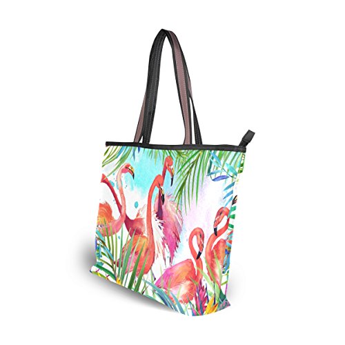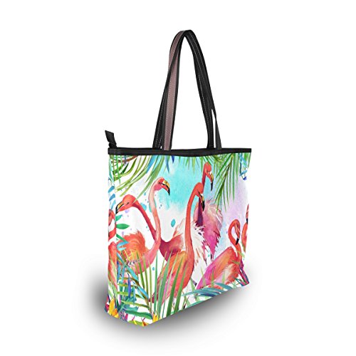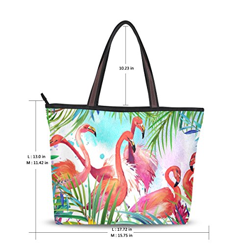 JSTEL Women Large Tote Top Handle Shoulder Bags Tropical Leaf Flamingo Patern Ladies Handbag L
