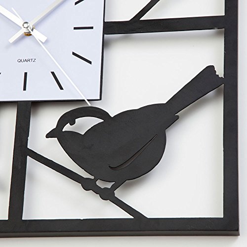 -. Binding : Kitchen -. Brand : Bits and Pieces -. Color : Black -. EAN : 8139740495073 -. Feature : Hang our wall clock from the mechanism on the back and shadows are cast creating a lifelike dimensional window. / Each window features a different whimsical, silhouetted bird. / Makes a great gift for bird lovers. / The silver toned quartz clock requires on AA batter, not included. / Measures 17-5/8" square. -. Label : Melville Direct -. Manufacturer : Melville Direct -. MPN : 49507 -. PackageQuantity : 1 -. PartNumber : 49507 -. ProductGroup : Home -. ProductTypeName : HOME -. Publisher : Melville Direct -. Studio : Melville Direct -. Title : Bits and Pieces - Window Birds Clock - Decorative Hanging Wall Clock - Beautiful Home Décor