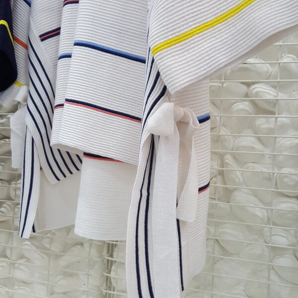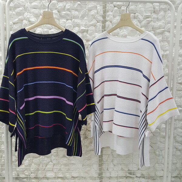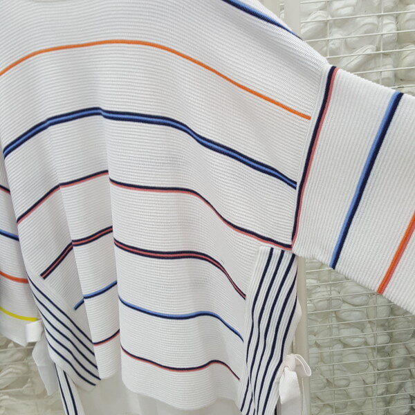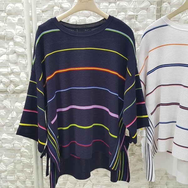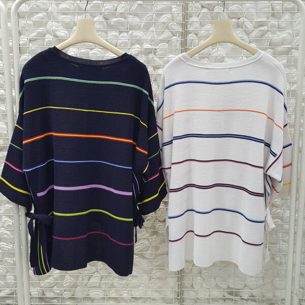 지컷 단가라 니트티셔츠 옆선 리본 포인트 오버핏입니다