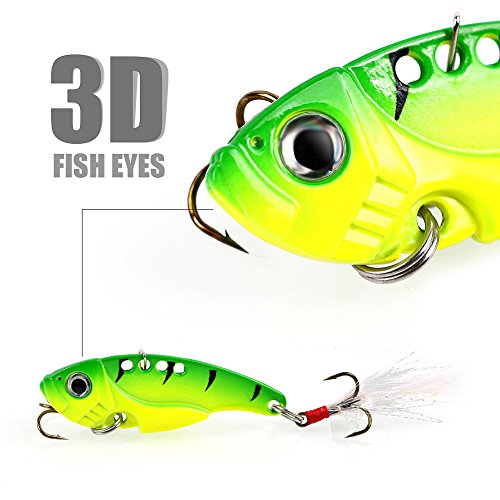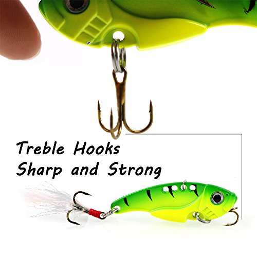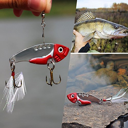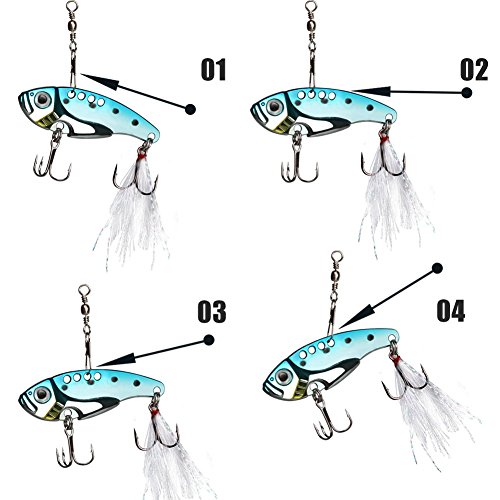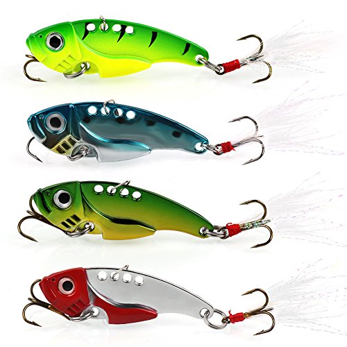 -. Feature : LIFELIKE: 4pcs/lot, four colors spinner spoon fishing lures with feather, features vivid fishing lures, sharp hooks, ,which makes it the powerful fishing catching seduction and it is a metal blade lure that has an incredible vibration as it's retrieved. / SIZE: Length with feather is approx 3.54in, without feather length is approx 1.97in, single weight is approx 0.42oz, color: green/red/yellow/blue / ADVANTAGE: The detailed patterns and life-like colors simulate bait fish and steel ball bearing rattles offer an aggressive presentation that will give you the advantage. / USAGE: Fish back has multiple tow points which means you can simply change tow points to suit the depth and current on the day. / FISH: Ideal for trout, bream, pickerel, panfish, perch, smallmouth bass, snapperblues, flathead and more.