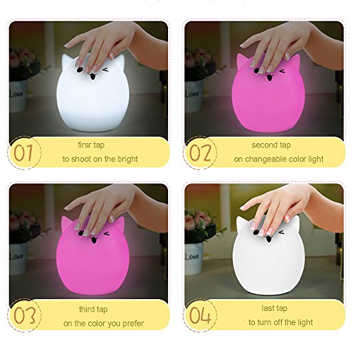 - 3 Light Modes &Tap Control: Tap the soft silicone surface to switch among normal white light mode, 7 single colors mode and 7-color breathing light mode, making it a romantic sweet nursery baby night lamp companion.