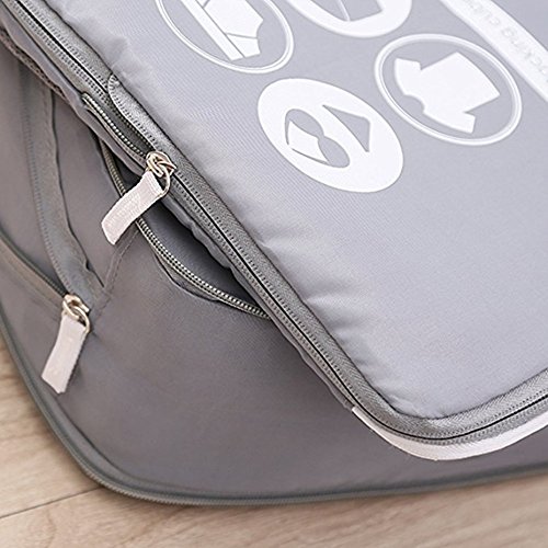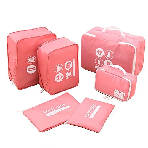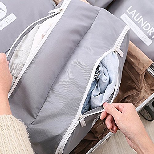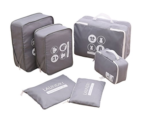 Package included: 1 x Double-sided Packing Cubes(14.96*10.24*6.3 inch); 1 x Extended zipper Packing Cubes(M)(13.39*10.24*3.94 inch); 1 x Extended zipper Packing Cubes(S)(11.8*8.66*3.94 inch); 1 x Secret Laundry Pouch(M)(12.6*9.06 inch); 1 x Secret Laundry Pouch(S)(10.24*7.48 inch); 1 x Bathroom pouch (8.67*5.9*3.9 inch) Cubes are made of Two-Ways Zipper closure except Laundry pouch. Made from high quality water resistant nylon material to withstand the wear and tear of traveling Mesh top panel for easy identification of contents, and ventilation soft mesh won't damage delicate fabrics. Multiple mesh bags to organize and separate your item, smooth material ensures that your clothes don't get creased Product Dimensions: 12.6 x 9.1 x 1.8 inches Shipping Weight: 1.2 pounds Package: 6pcs/set of packing pouch (suitcase is not included)Feature