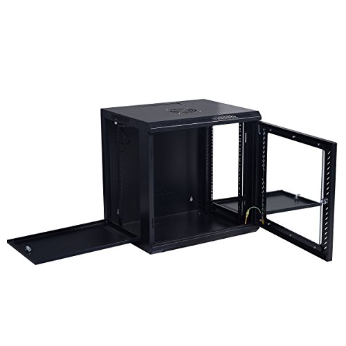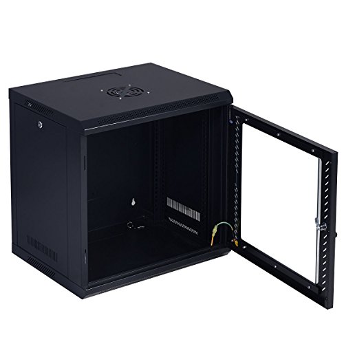 Product Description Product Description This IT Cabinet Can Be Wall-Mounted Or Self Standing And Is Great For Organizing Your Networking Equipment. It Has Key Locked Removable Side Panels For Easy Access, Along With A Ceiling Fan And Venting Slots To Keep Your Equipment Cool. Specifications Color: Black Enclosure Material: Steel Weight: 45 Lbs Dimension:21.7" X 17.7" X 21.7"(L*W*H) Thickness Of Pillar:2mm Thickness Of Armored Glass:5mm Rack U Height: 9 Package Include: 1 X Network Cabinet, 2 Set Of Keys, Some Screws. 0