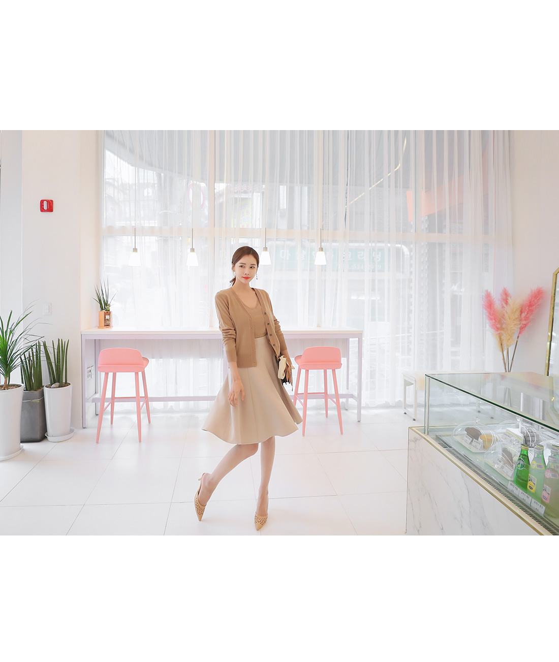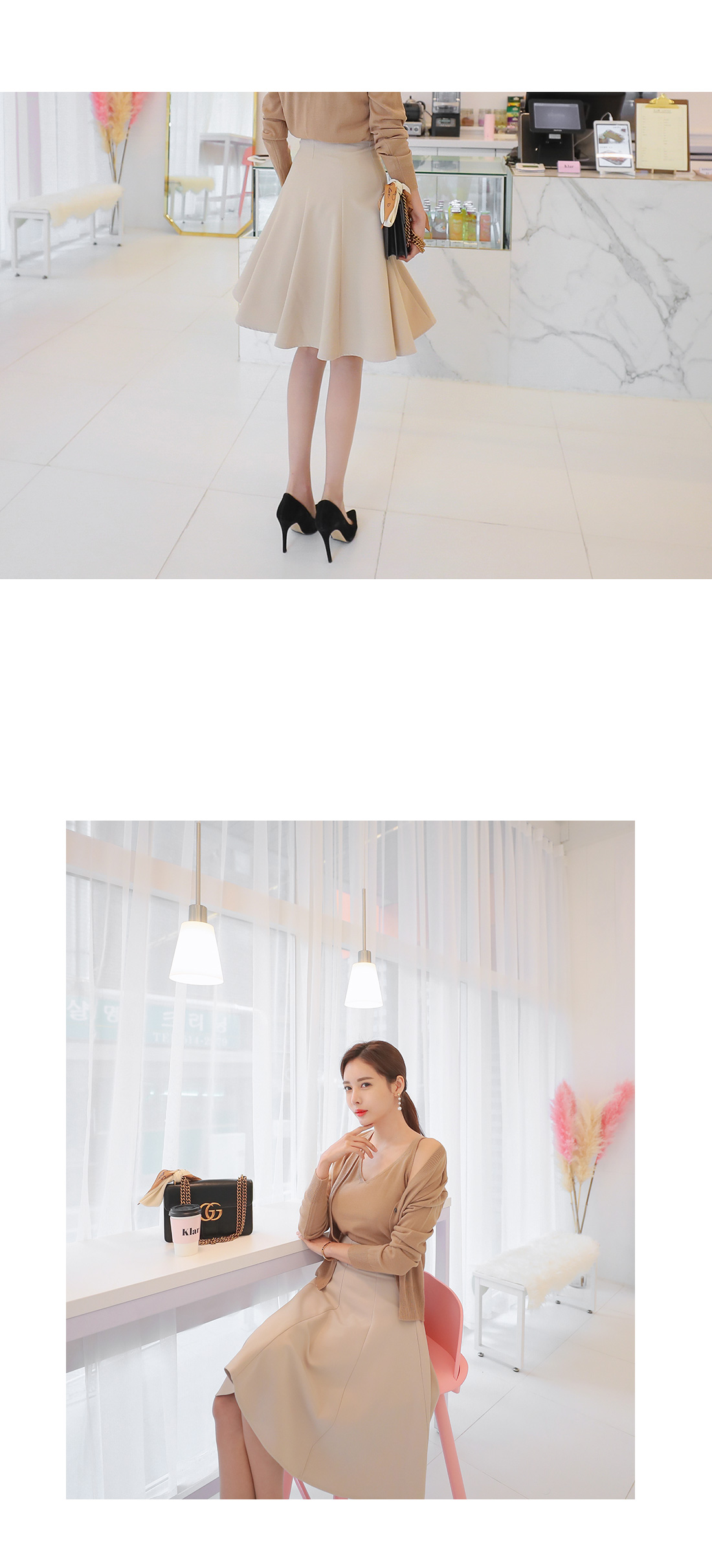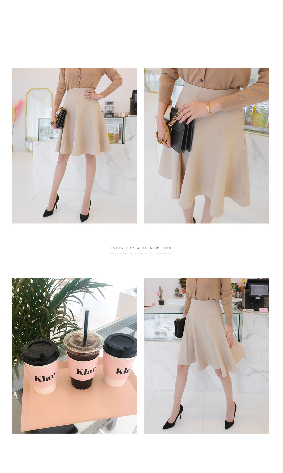 베이직한 무드의 절개 플레어 스커트를 소개합니다.