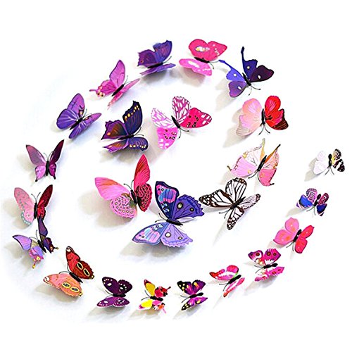 -. Feature : Perfect for decorating girls' bedrooms or any flat surface. / Large butterflies are 4.3x3.7'', medium ones are 3.7x3.3'', and small ones are 2.3x1.7''. / They can be applied to any smooth surface and moved around without damaging painted surfaces or leaving behind sticky residue. / Great for girls' bedrooms, dorms, or even on the inside of lockers! / Package: 12pcs, 24pcs, 36pcs, 48pcs