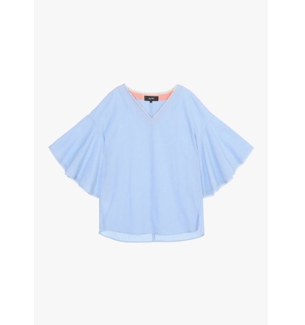 플라운스 슬리브 디테일이 멋스러운 브이넥 블라우스 탑입니다. 측면 하단에 트임이 있어 편리성이 뛰어난 제품입니다. 러블리한 디자인으로 페미닌룩, 걸리쉬룩에 연출이 용이합니다.