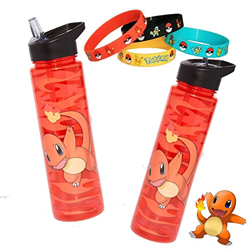 - Includes: 1 16oz Charmander Water Bottle + 4 Pokemon Wristbands (Pikachu, Charmander, Squirtle, Bulbasaur) One of each color