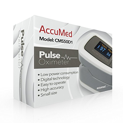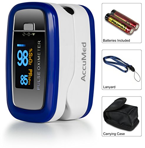 -. Brand : AccuMed -. Color : Blue -. EAN : 0641378487262 -. Feature : AccuMed's digital LED display with low power consumption plus auto-power off feature allows for 40 continuous hours of battery life. / Cover against ambient light offers superior ease of reading. Fast and accurate SpO2 and pulse measurements. / Accommodates pediatric to adult finger sizes and can be used by sports and exercise enthusiasts as well as anyone interested in measuring pulse rate and oxygen saturation. / Includes 2 AAA batteries, lanyard, and convenient carrying case. / Guaranteed by 1 US year warranty offered exclusively by AccuMed. -. IsAdultProduct : 0 -. IsAutographed : 0 -. IsMemorabilia : 0 -. Label : AccuMed -. Manufacturer : AccuMed -. MPN : CMS50D1-Blue -. PackageQuantity : 1 -. PartNumber : CMS50D1-Blue -. ProductGroup : Sports -. ProductTypeName : PROFESSIONAL_HEALTHCARE -. Publisher : AccuMed -. Size : CMS-50D1 -. Studio : AccuMed -. Title : AccuMed® CMS-50D1 Pulse Oximeter Finger Pulse Blood Oxygen SpO2 Monitor w/ Carrying case, Landyard & Battery FDA CE Approved (Blue) -. UPC : 641378487262