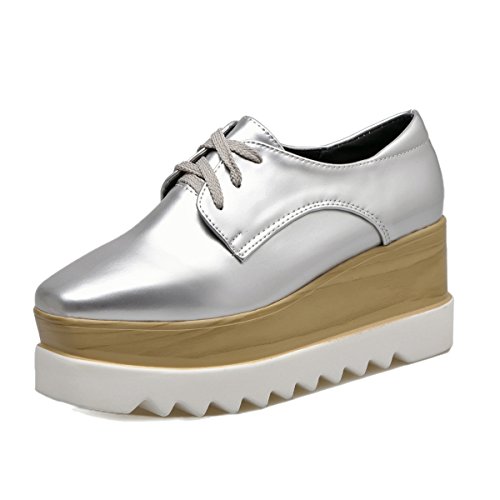-. Title : Dear Time Platform Women Oxfords Cauual Silver Patent PU Leather Creeper Shoes