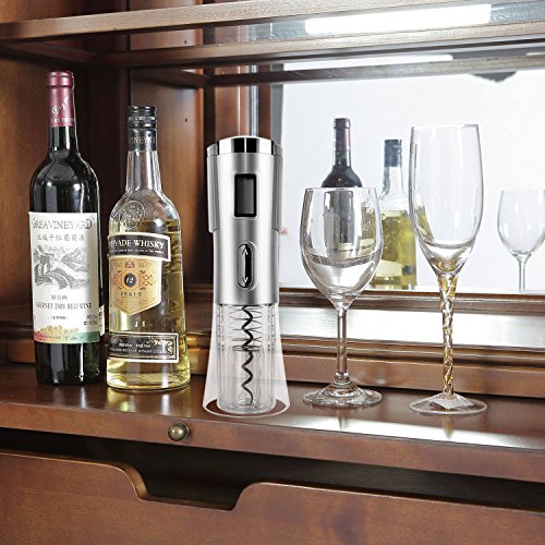 Designed for home and restaurant use, WONTECHMI electric corkscrew auto wine opener, removes a wine bottle cork with the gentle push of a button.