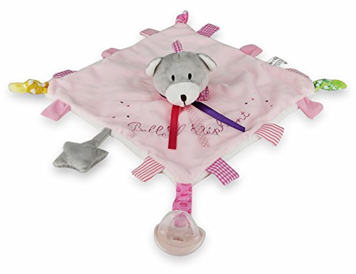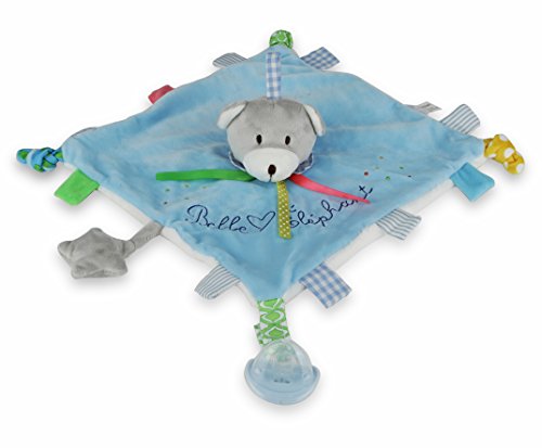 -. Title : Belle Éléphant Plush Bear Doudou With Attached Pacifier. Crinkle Tags And Ears, Peep In Star Rattle,Jingle Bell In Teddy Bear's Head.( Great For Baby Shower Gift)