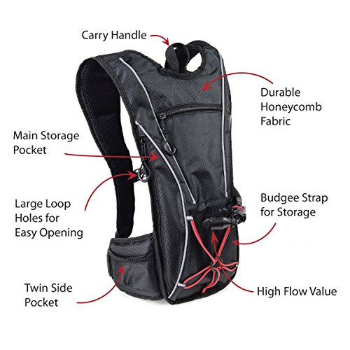 QUALITY HYDRATION BLADDER - Superior bladder constructions includes a 2 liter (67 ounce) bladder with large opening for easy fill and cleaning. Longevity inbuilt kink-free tube, and twist-lock value to prevent leaks and keep you dry