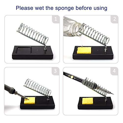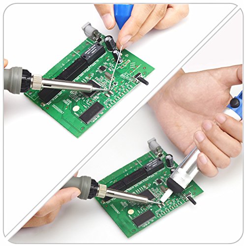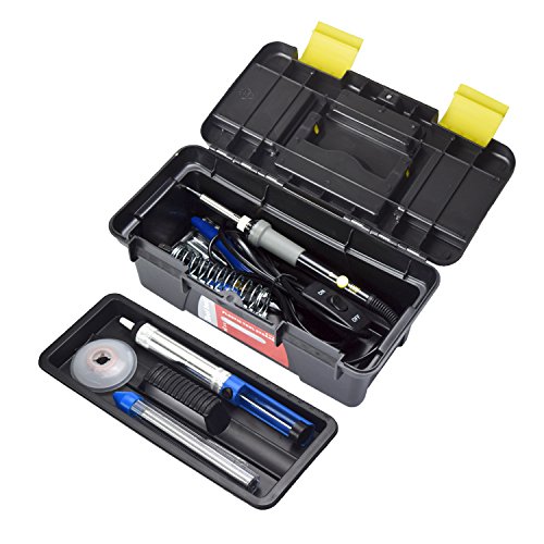 - 11-in-1 Full Kit - Kit comes with soldering iron, 5 soldering tips, solder wire, soldering sucker (desoldering pump), solder wick, iron stand with cleaning sponge, 2 anti-static tweezers, Diagonal cutting pliers and a tool box. This tool set make it perfect for family use such as electric repair, home DIY or wood burning projection, etc.