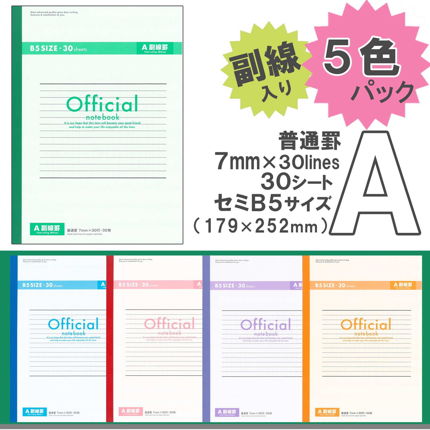 Apika Semi B5 Notebook official sub-line containing 6AZ3FCX5G A ruled five-color set