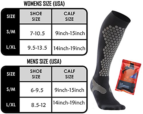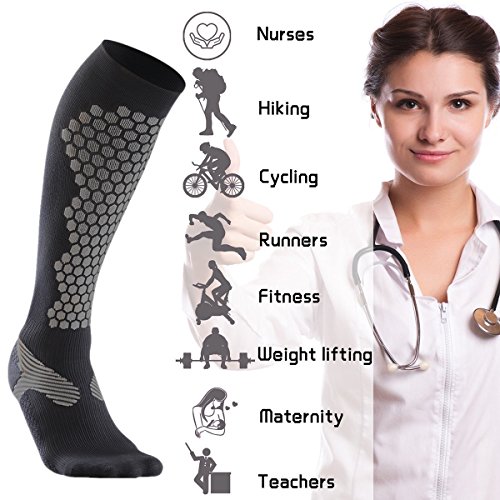 - ✅ IMPROVED BLOOD CIRCULATION WITH GRADUATED COMPRESSION – Our graduated compression technology (20-25mmHg) provides the ideal compression to provide the maximum boost to your blood circulation. Better oxygen circulation provided by our compression socks helps reduce lactic acid build up and aids muscle recovery in your calf, ankle, feet, and legs. Why let yourself suffer any longer? Let our compression socks help you promote recovery, reduce injury, and feel great again!