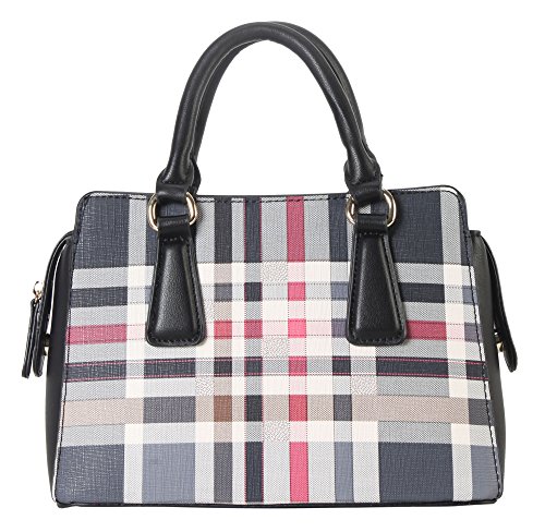 -. Brand : Diophy -. Color : Black -. Department : womens -. Feature : This handbag comes in 3 different colors: Black, Brown, and Fuchsia. / High Quality PU Leather Colorful Plaid Pattern Medium Top Handle Handbag. / High Quality Fabric Lined Interior with Multiple Interior Pockets. 1 Main Compartment with 2 Zippered Pockets and 2 Open Pockets Inside. / Approximate Size info: Length 9.7" x Width 4.5" x Height 7" Material: PU Faux Leather. Top Zipper Closure. / Color showing in other color is to show the different variation angles of the handbag. The actual bag ship, will be the one your purchased. -. Label : Diophy -. Manufacturer : Diophy -. Model : XGZ-6263 Parent -. PackageQuantity : 1 -. ProductGroup : Shoes -. ProductTypeName : HANDBAG -. Publisher : Diophy -. Size : Medium -. Studio : Diophy -. Title : Diophy PU Leather Colorful Plaid Pattern Medium Top Handle Handbag XGZ-6263