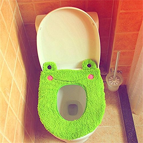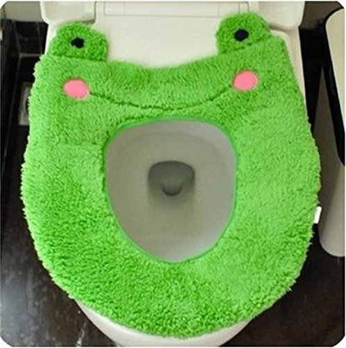 Cute Cartoon Warm Soft Washable Velveteen Comfy thicken Short plush Durable paste Buckle Style Toilet Decor Toilet Seat Cover potty Toilet Mat Toilet ring Frog Design