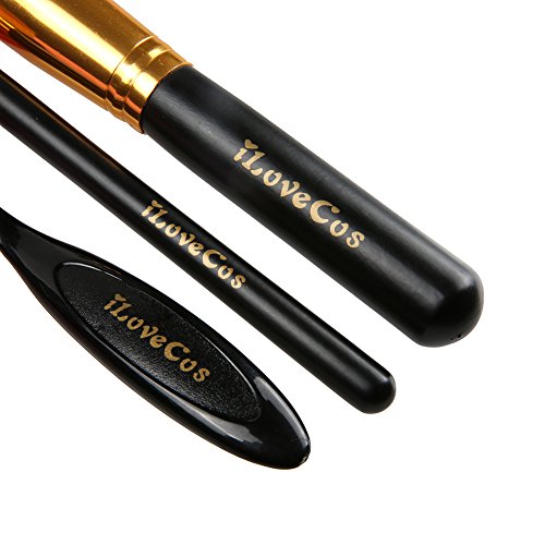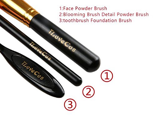 - Feature : ONE Makeup Set Does All the Job!--iLoveCos makeup brush set is perfect for concealer, primer,contouring, foundation, powder, cream, blush and blending. / Extremely soft and apply makeup perfectly. Both good for professionals and amateur. / All these 3 makeup brushes are designed for a flawless foundation application and will do all the job.Besides, you have a BONUS makeup sponge to get the job done. / Solid quality makeup brush kit with a 1-Year-Money-Back Guarantee. / Free gift:iLoveCos makeup sponge- latex-free, antimicrobial non-allergenic foam to help fight bacteria. Becomes bigger when wet. No streaks and no areas with too much nor too little makeup.