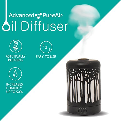 ADVANCED PURE AIR OIL DIFFUSER 120ml: Offers simple, peaceful, colorful aromatherapy mist with the touch of a button. It has 8 revolving LED Light settings and features 3 mist function. Both features may be operated independently or together.
