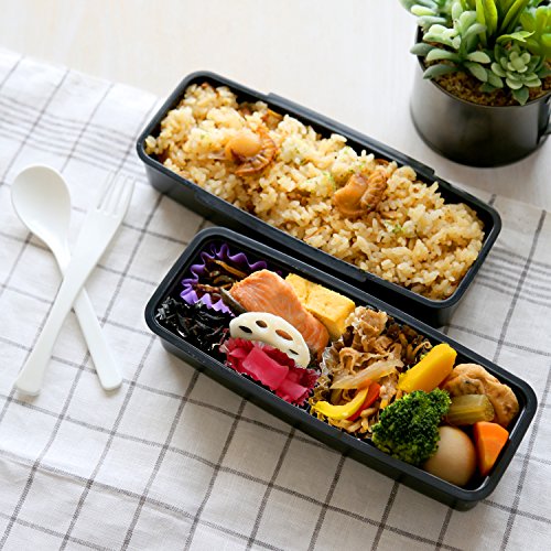 Japanese Style Stackable Bento Lunch Box with Utensils - Microwave, Dishwasher, & Freezer Safe, BPA Free FDA Approved, Black 750ml Capacity