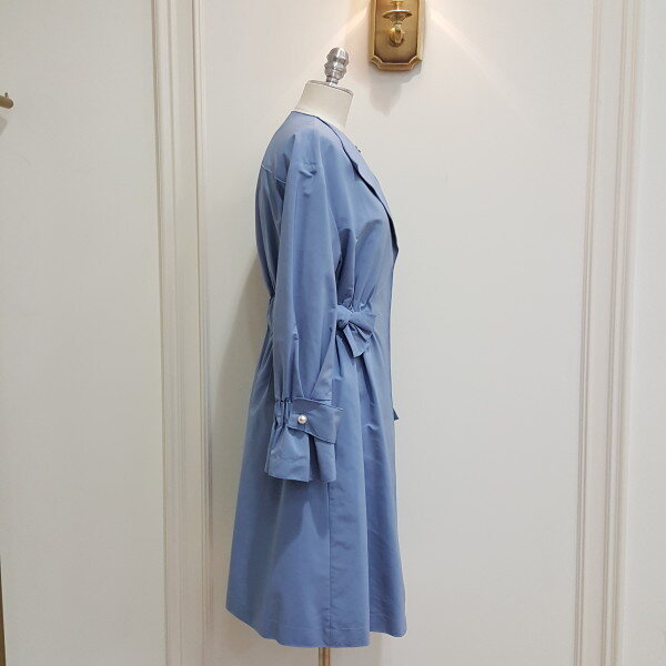 앞마이와 소매에 몰지자수 처리로 시접을 투박하지 않고 가볍게 처리한 가을 홑겹 BBY. 허리에 스트링을 와끼에서 조여 연출가능한 스타일.캐주얼이나 원피스에 두루연출가능