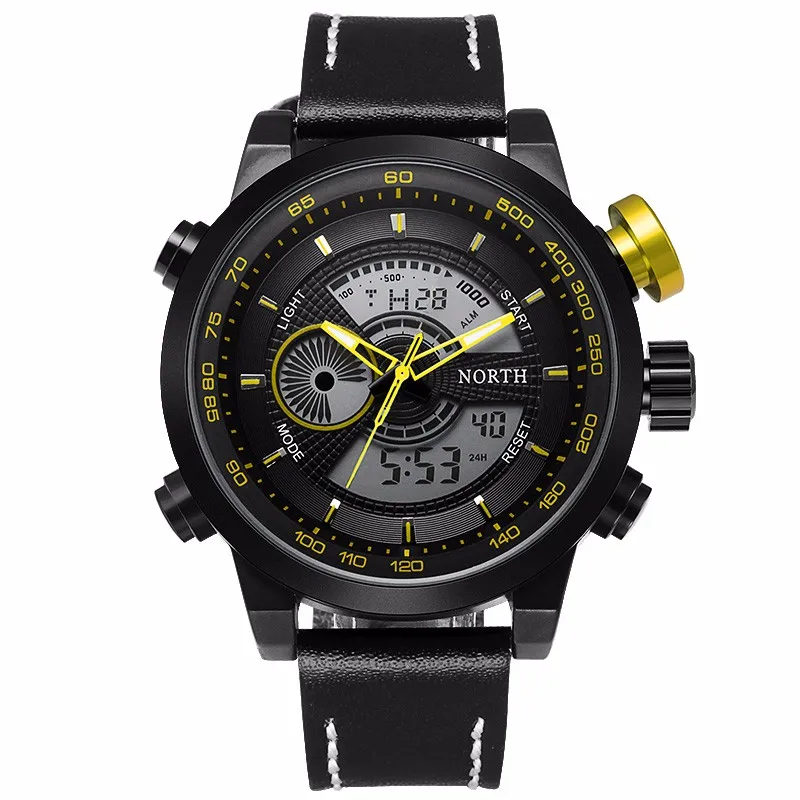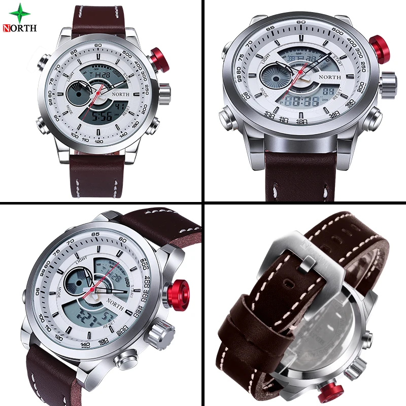 Men Watches Leather Strap:Analog Digital Watch
