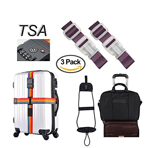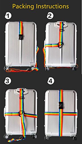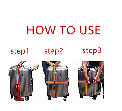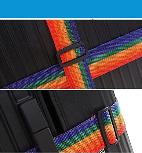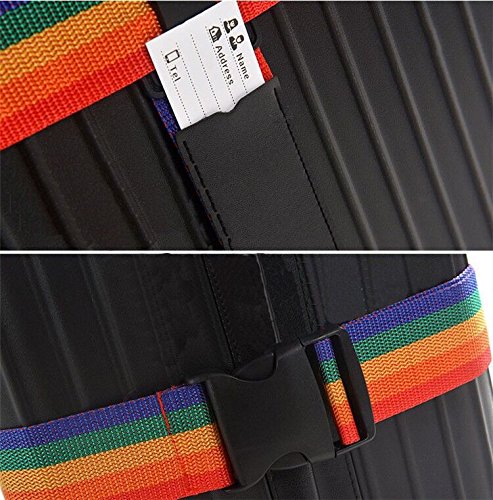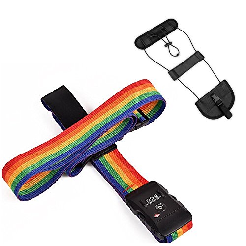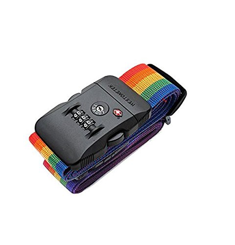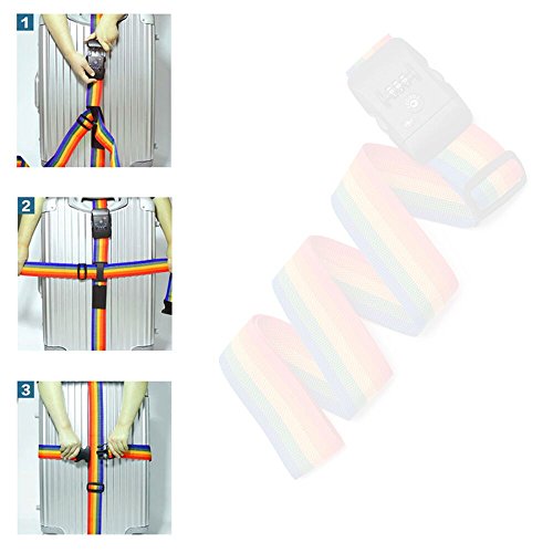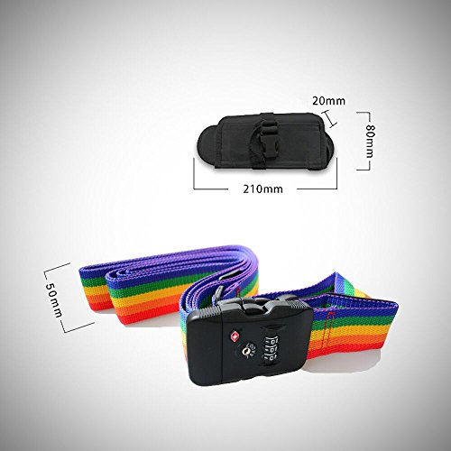 Product Description TRAVEL SENTRY APPROVED TSA LOCK- enables authorized security personnel to inspect your luggage at the airport without damaging your suitcase. Available in a fully adjustable, Vertical:120-210CM; Horizontal:100-180CM; Belt width: 5CM; Universal fit for 20"-32" suitcase. INSTANTLY SPOT YOUR LUGGAGE ON THE CAROUSEL - Colorful Rainbow Design makes it quick and easy to find at the collection point. Don't waste any more time at baggage claim than you need to. TRAVEL WORRY FREE-for seasoned travelers and frequent flyers. A good suitcase belt such as this will last you a lifetime and provide that much needed security. Rest assured that this luggage strap will keep your suitcase safe the world over. EASY TO USE AND HASSLE FREE luggage strap for those looking for something that works the first time around. Setting and resetting the combination lock is an effortless task. Material: Durable Nylon Webbing Strap Polypropylene Plastic Buckle PVC ID Tag Slot. Luggage not included! 0