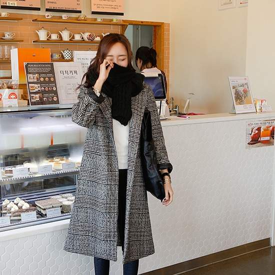 流行りのグレンチェックのロングコート