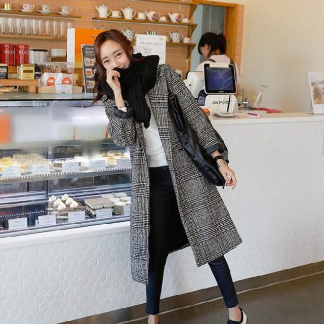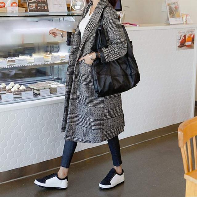 トレンド グレンチェック 格子 ロング コート ベーシック スタイリッシュ 秋冬 上品 エレガント M L XL 2XL